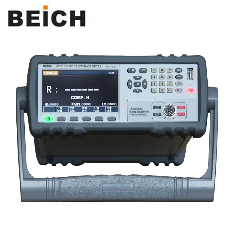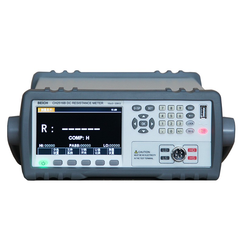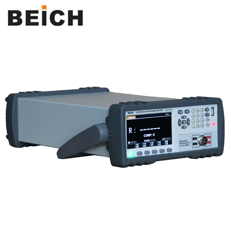 CH2516/A/B系列直流电阻测试仪具有高精度宽量程高性价比的特点,采用当前主流的32bits CPU和高密度SMD贴装工艺、24位色4.3英寸IPS彩色液晶屏,界面直观清爽、操作便捷。仪器具有较高的抗干扰性;量程范围为: 1uΩ-2MΩ;显示位数为四位半;测试速度可达20次/秒;测试精度可达 0.05%;温度补偿能免除环境温度对测试工作的影响;本仪器配备有专业分选功能与数据输出功能等,具有多样分选讯响设置,还可匹配Handler接口,应用于自动分选系统完成全自动流水线测试,使测试效率倍增。并配备RS232接口,用于远程控制和数据采集与分析。本仪器小巧、紧凑但功能齐全。通过四端子测试法,可高速、高精度的测量各种高、中、低值电阻器;各种开关接触电阻;接插件接触电阻;继电器线包和触点电阻;变压器、电感器、电机、偏转线圈绕线电阻;导线电阻;车、船、飞机的金属铆接电阻;保险丝、电阻器、导电橡胶的直流电阻、印制板线条和孔化电阻等直流低电阻。由于仪器配备有温度补偿功能,因此适合于测量电阻值因温度而发生变化的被测对象。仪器广泛用于研究开发、生产线、进料检测等各种场所。