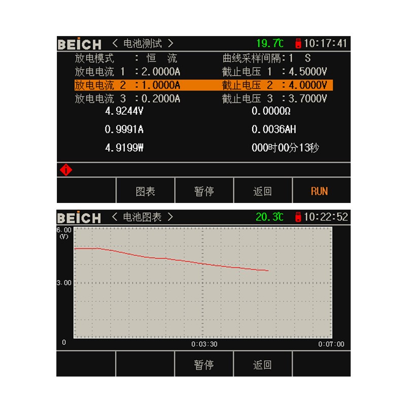 电池测试模式,可测试电池耐力和容量,并带内阻测试与曲线描绘功能